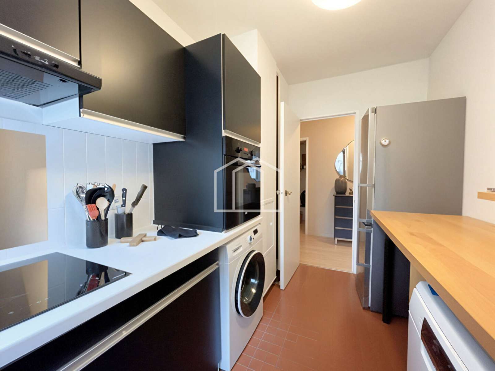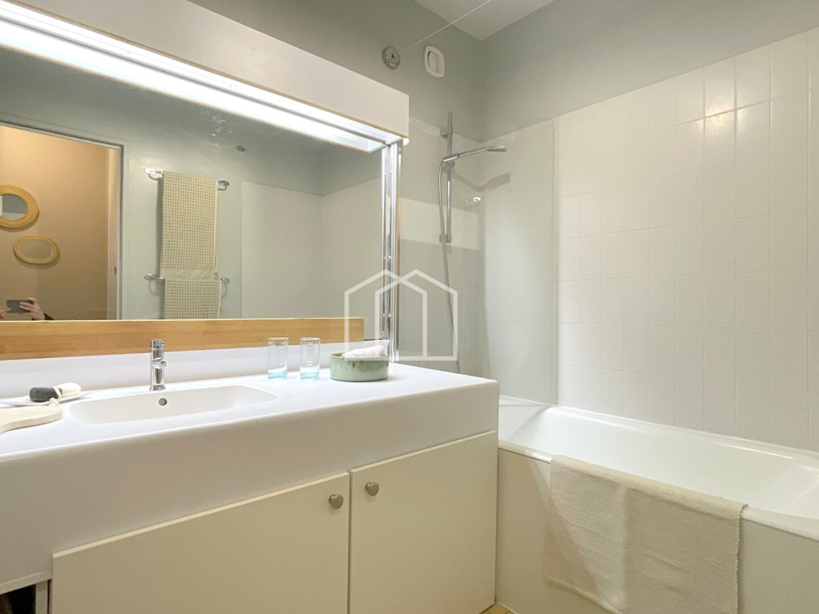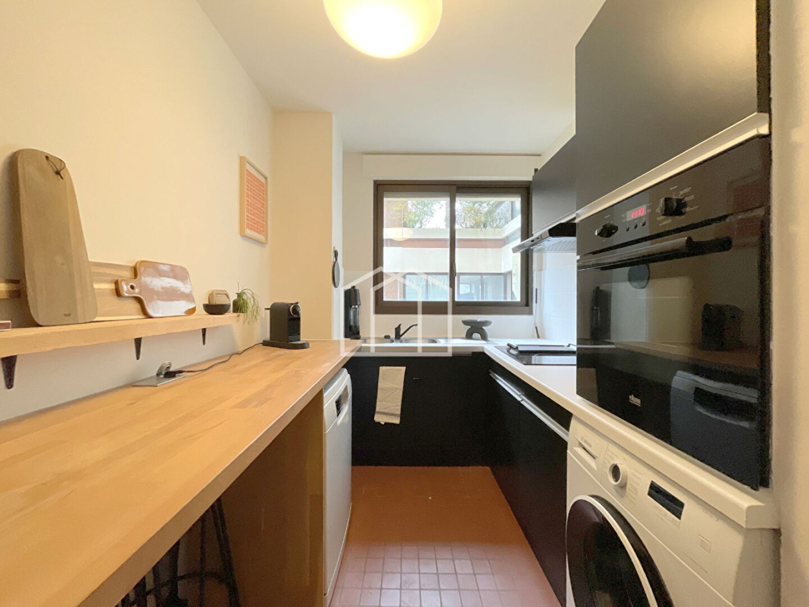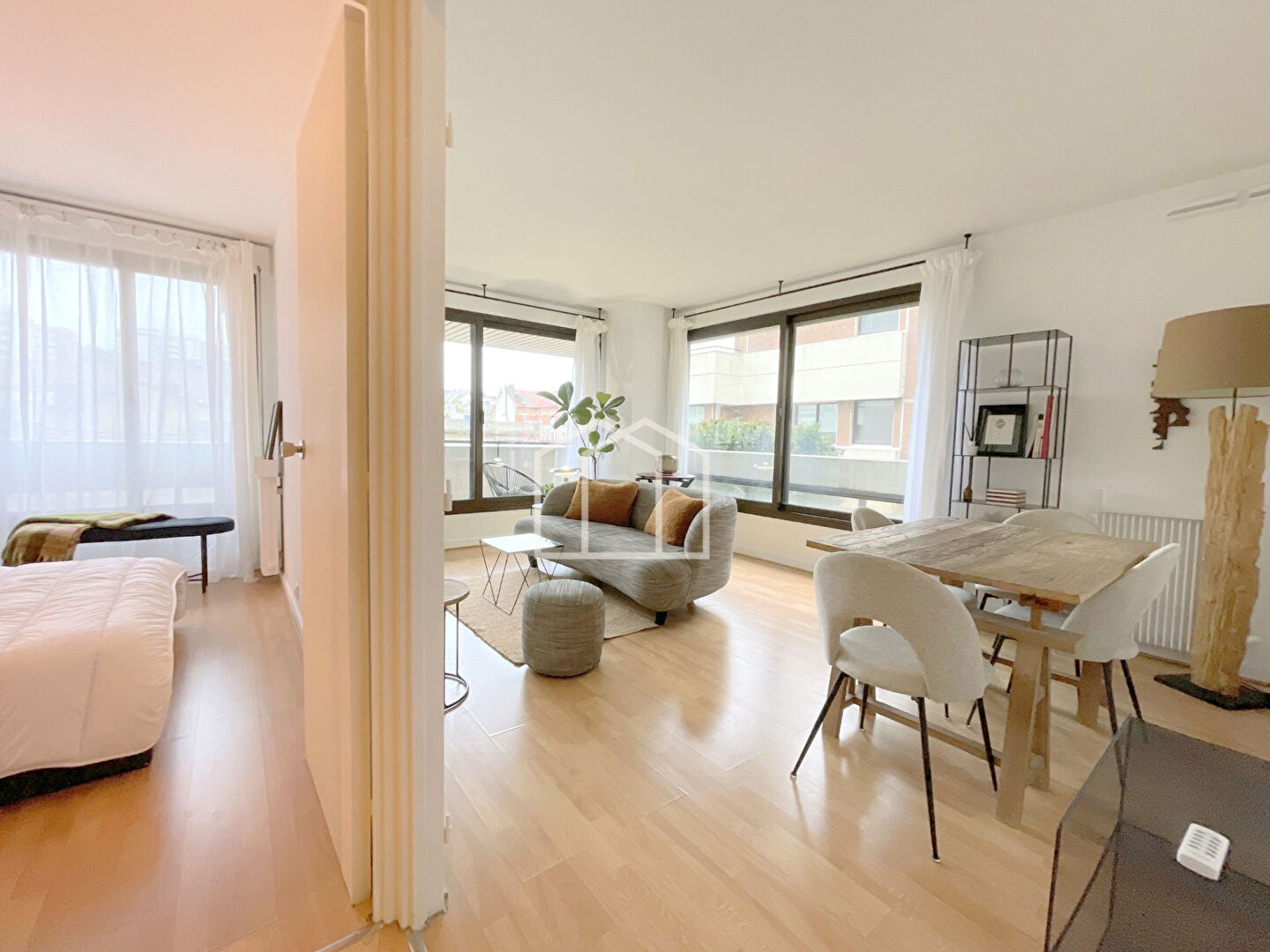 Dans une copropriété avec gardien, appartement de 2 pièces , MEUBLÉ, de 48.66 m² comprenant : une entrée, une belle pièce de vie de 20m² donnant accès à un balcon de 6m², une cuisine séparée, une chambre, une salle de bains et un WC indépendant.