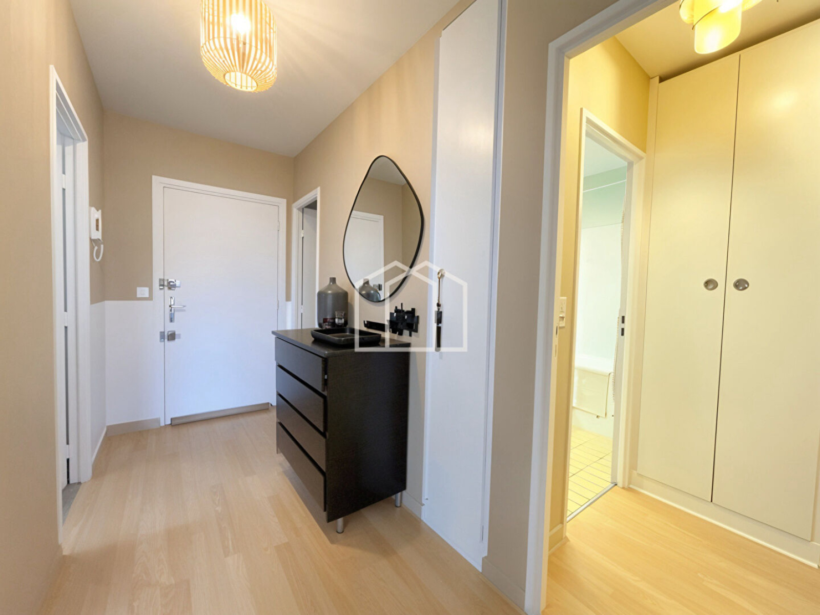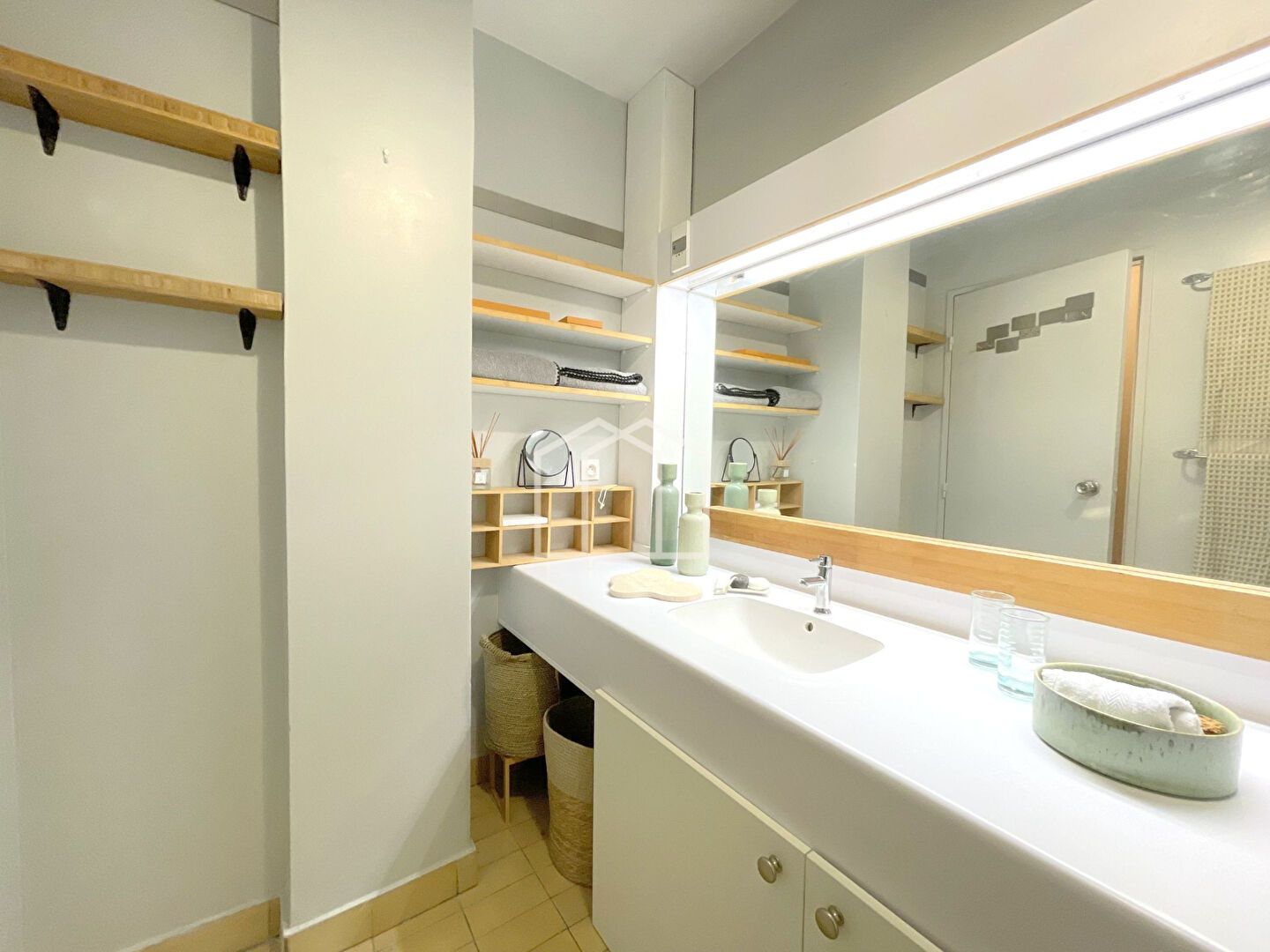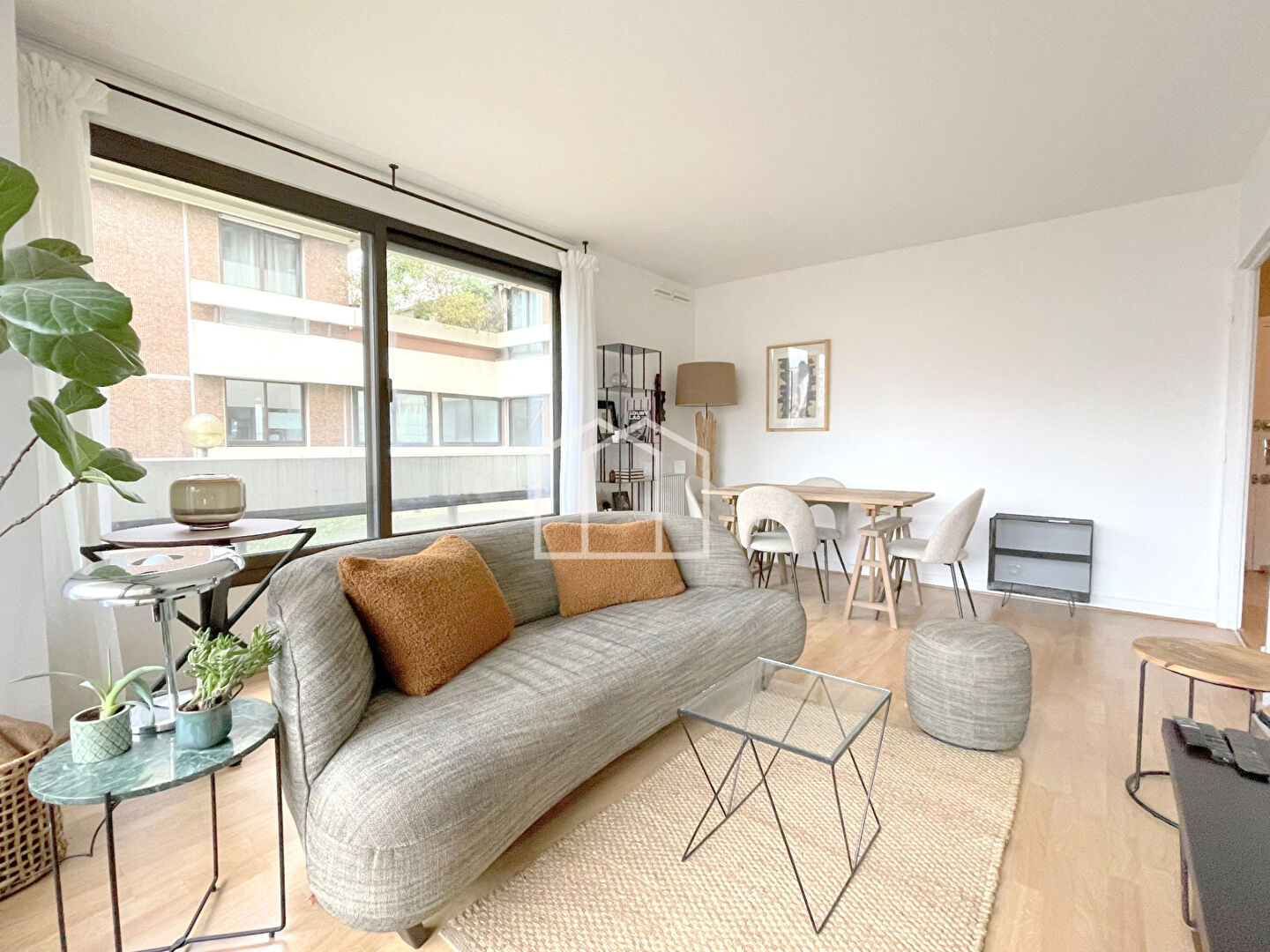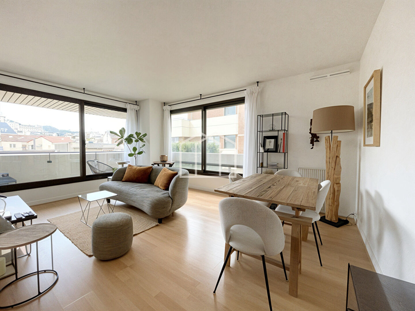 Dans une copropriété avec gardien, appartement de 2 pièces , MEUBLÉ, de 48.66 m² comprenant : une entrée, une belle pièce de vie de 20m² donnant accès à un balcon de 6m², une cuisine séparée, une chambre, une salle de bains et un WC indépendant.