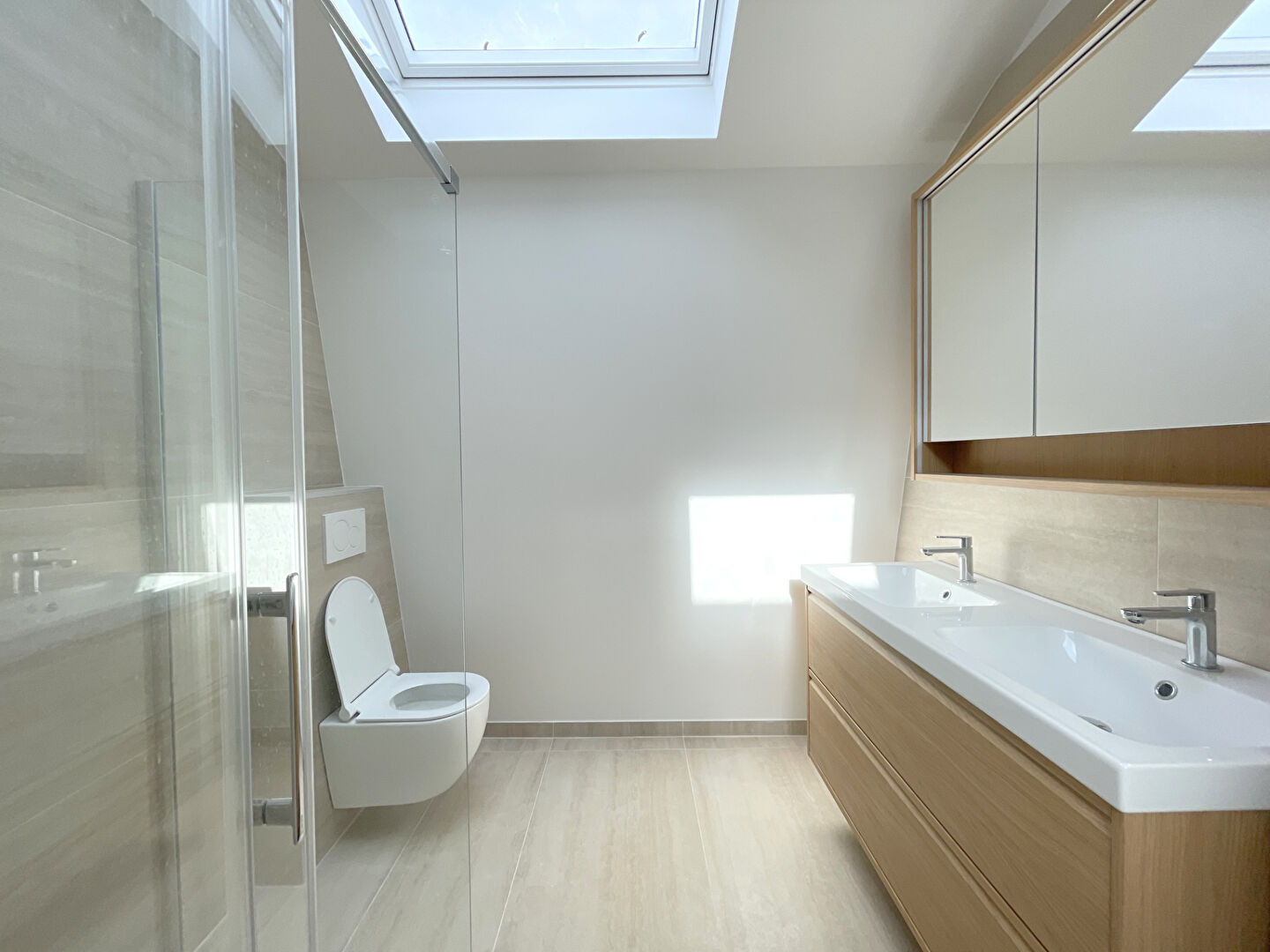 Maison de ville neuve de 94.99 m² au sol (90.39m² hab.) comprenant, au rez-de -chaussée, un séjour/salle à manger avec cuisine aménagée et semi-équipée ; au 1er étage, un dégagement, 2 chambres avec placard, une salle de bains, un wc séparé; au 2ème étage, un dégagement, une suite parentale avec rangements et salle de douche avec wc. Espace extérieur pour stationner 1 véhicule. Maison à 2 pas du T2 'Suresnes Longchamp' , Gare 'Suresnes Mont Valérien' à 10/12 min, commerces à moins de 10 min et écoles à proximité.