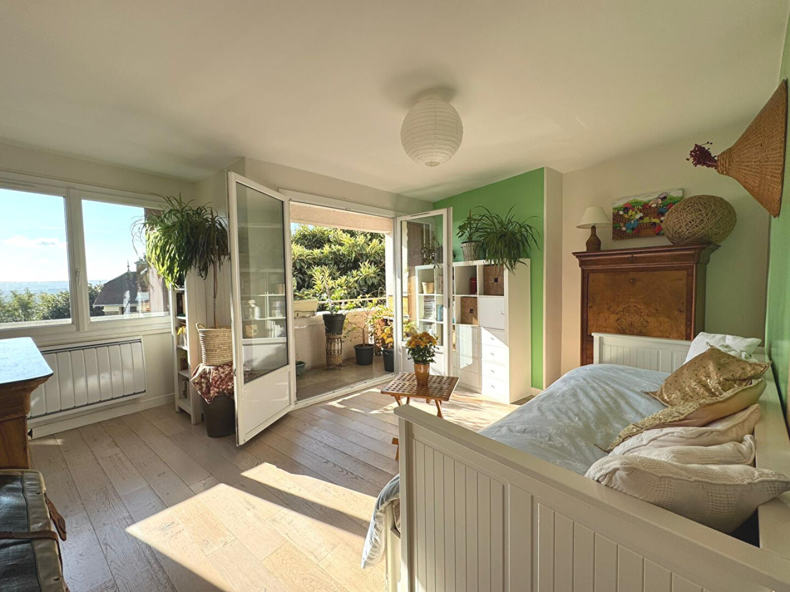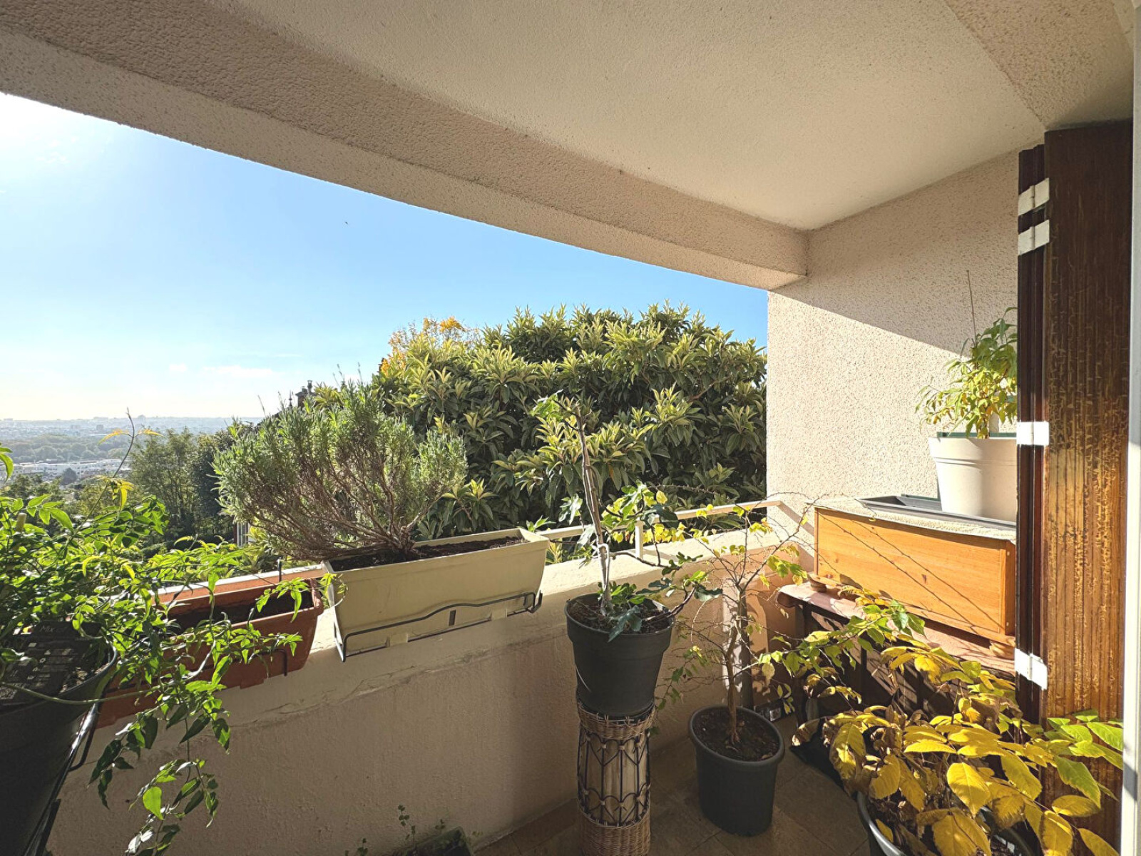 Appartement double exposition, baigné de lumière, avec une vue dégagée sur Paris et sur les jardins de la copropriété.