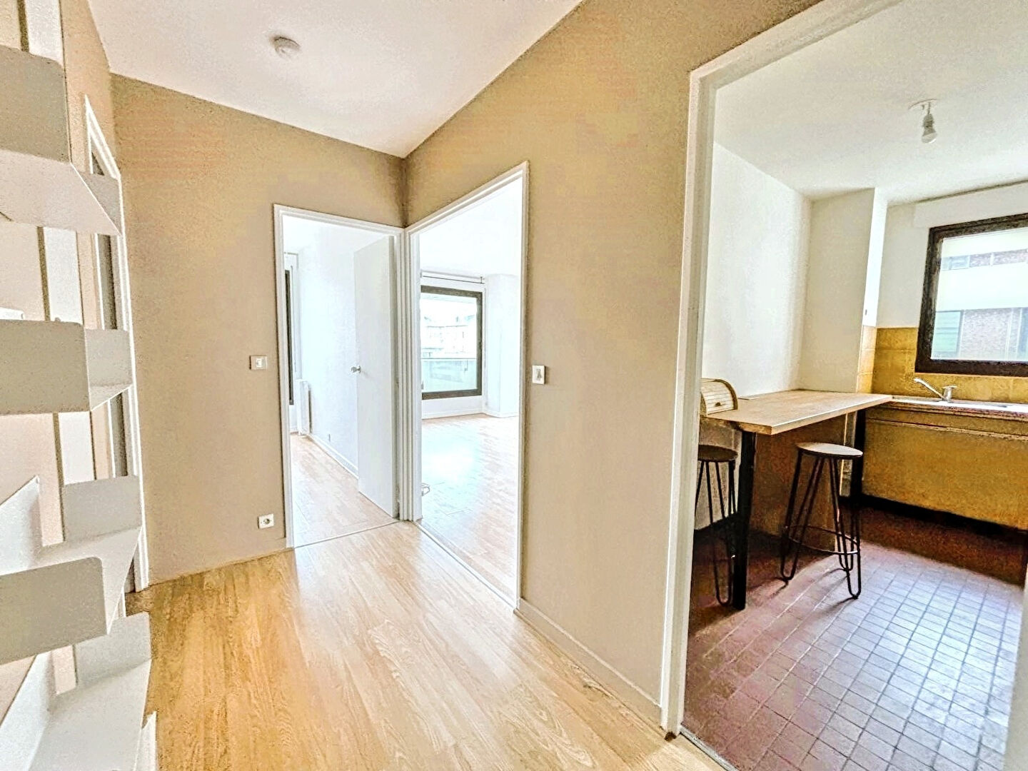 Dans une copropriété avec gardien, appartement de 2 pièces de 50m² comprenant : une entrée, une belle pièce de vie de 20m² donnant accès à un balcon de 6m², une cuisine séparée (cuisine US possible), une chambre, une salle de bains et un WC indépendant.