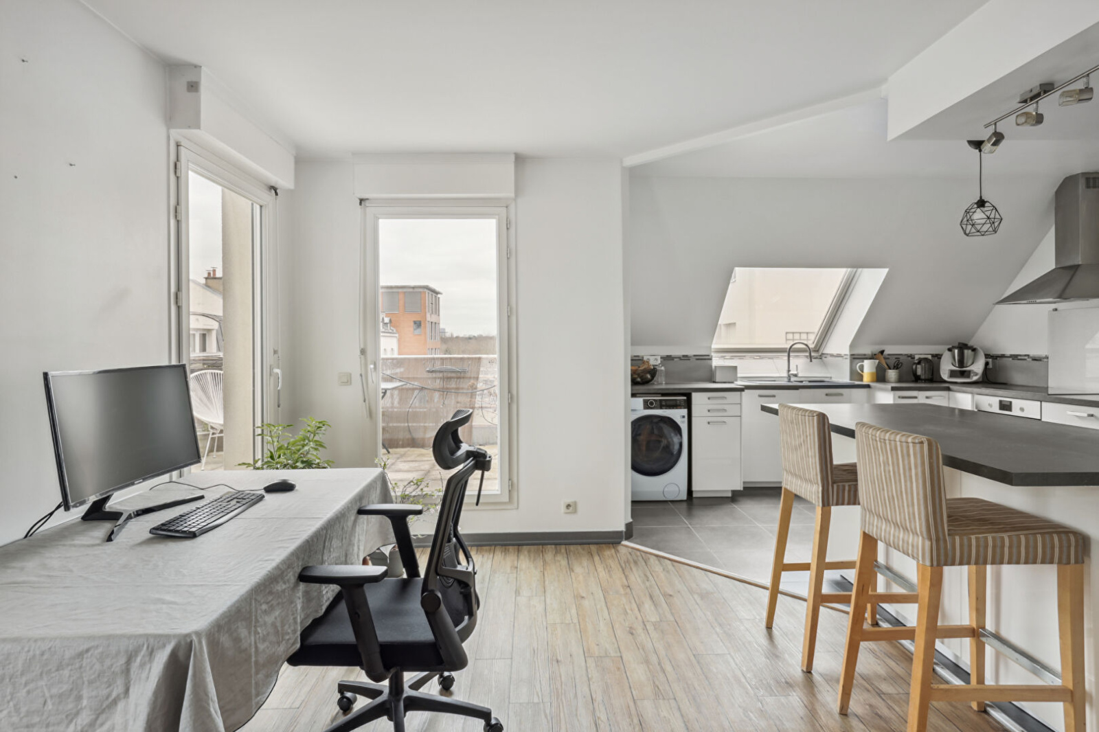 Il comprend : une entrée avec rangements, un grand séjour / salle à manger avec cuisine américaine, le tout donnant accès à une grande terrasse très bien exposée et au calme (17m2). Un espace nuit comprenant : deux chambres dont une donnant accès à un balcon (3.33m2), une salle de bains et un WC séparé.