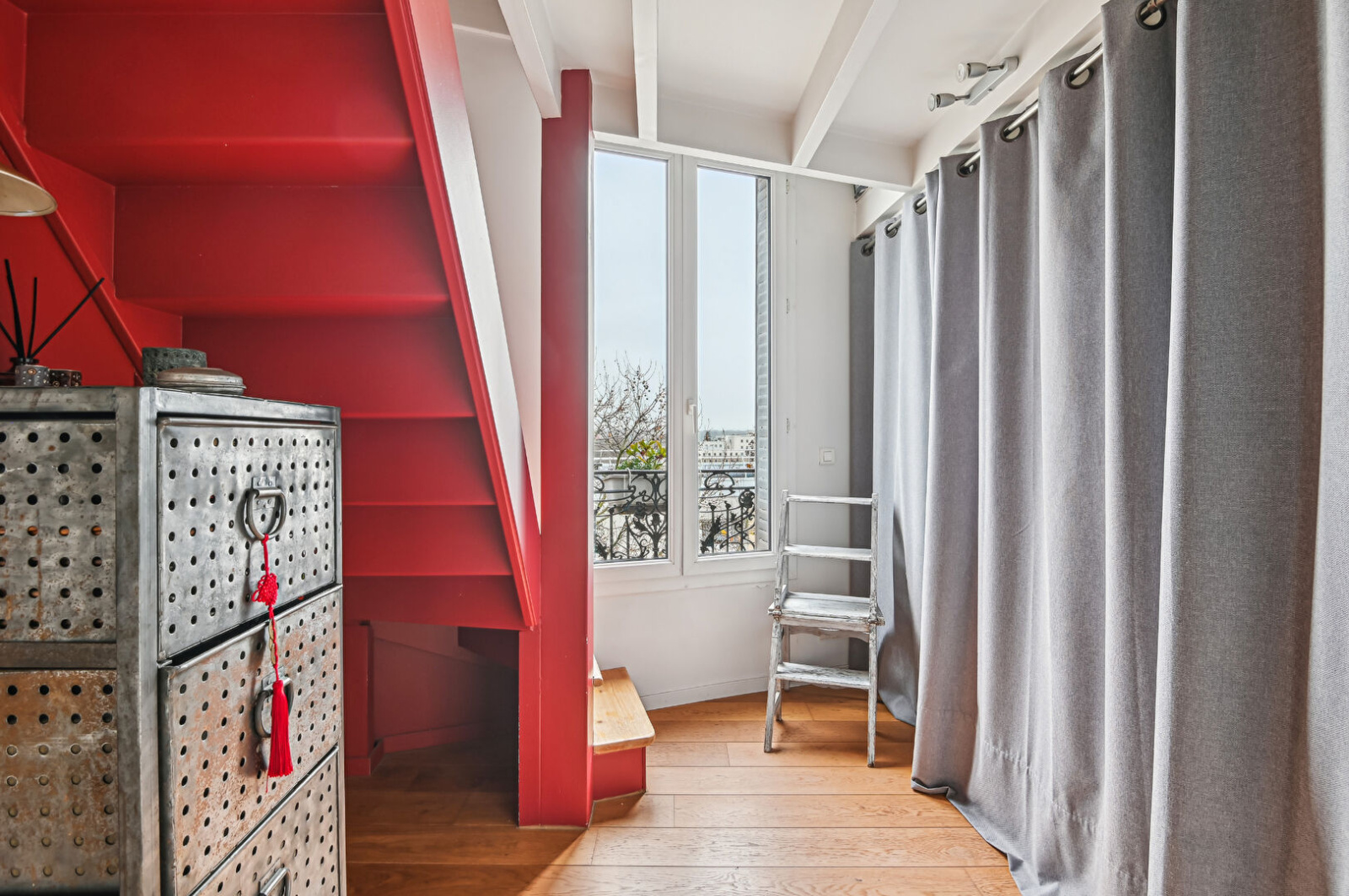 Dans une petite copropriété au calme, un appartement atypique en duplex.