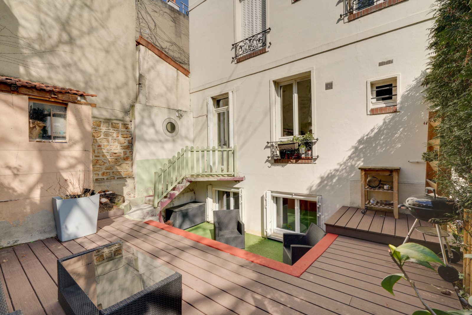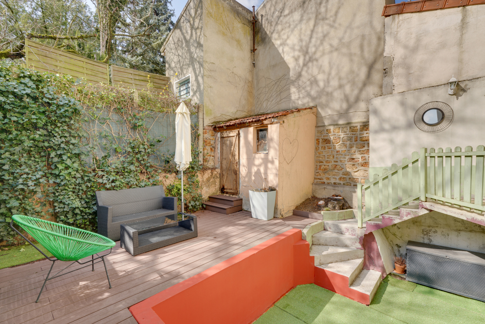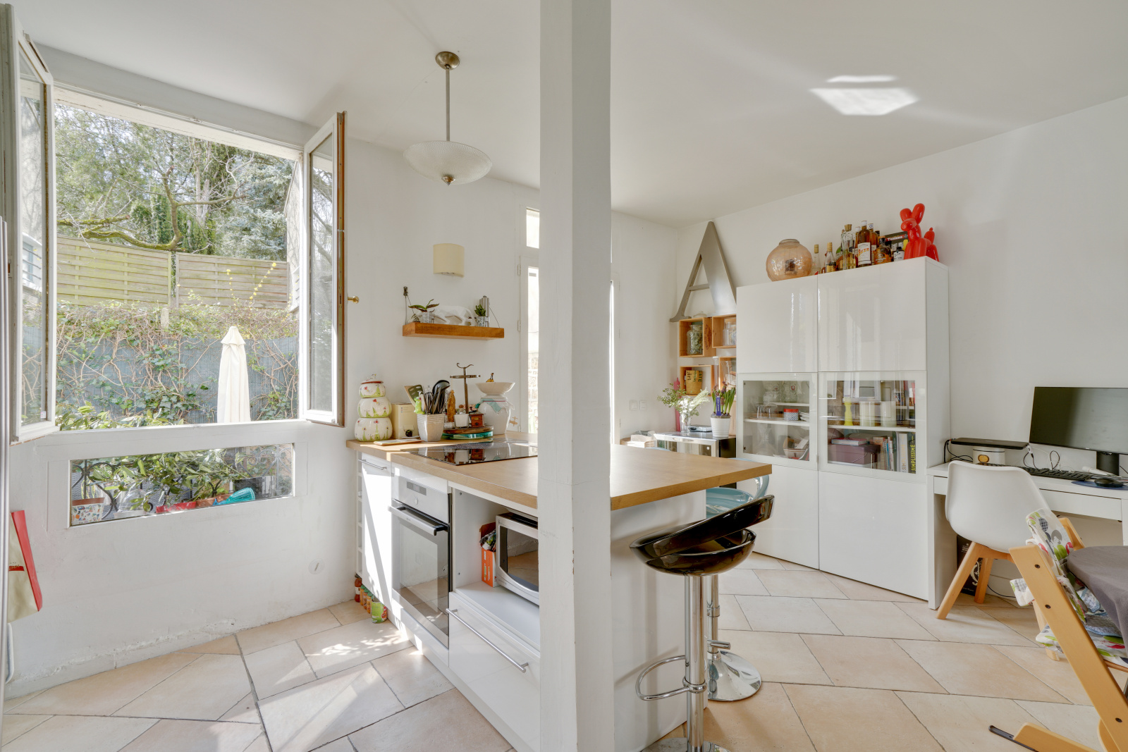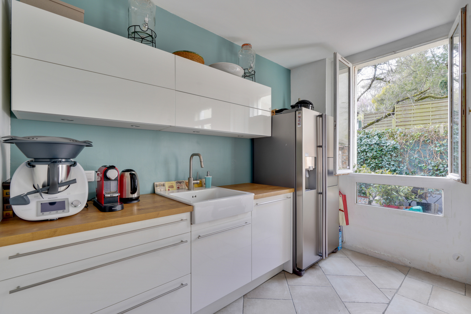 SURESNES COTTAGES - Au sein d'un immeuble 1930, spacieux 3 pièces avec jouissance exclusive d'un jardin avec terrasse exposé SUD. Cet appartement en DUPLEX de 74 m2 habitables (69 m2 carrez) est composé au niveau 1 d'une petite entrée avec placard, d'un vaste séjour traversant avec cuisine US, pièce donnant accès à 40 m2 d'espaces extérieurs. Au niveau 2, deux chambres dont une avec grand dressing, une salle de bains. Un WC par niveau dont un avec emplacement machine à laver. Travaux récents: Fenêtres double vitrages avec volets roulants électriques,(dans la chambre), cuisine avec ilot central, aménagements de placards, convecteurs électriques. Ses atouts : Environnement de qualité, calme absolu, très lumineux. Vous apprécierez l'ambiance "Maison" de cet appartement. Proximité immédiate des écoles, des transports et du Parc du Mont Valérien. RARE SUR LE MARCHE !