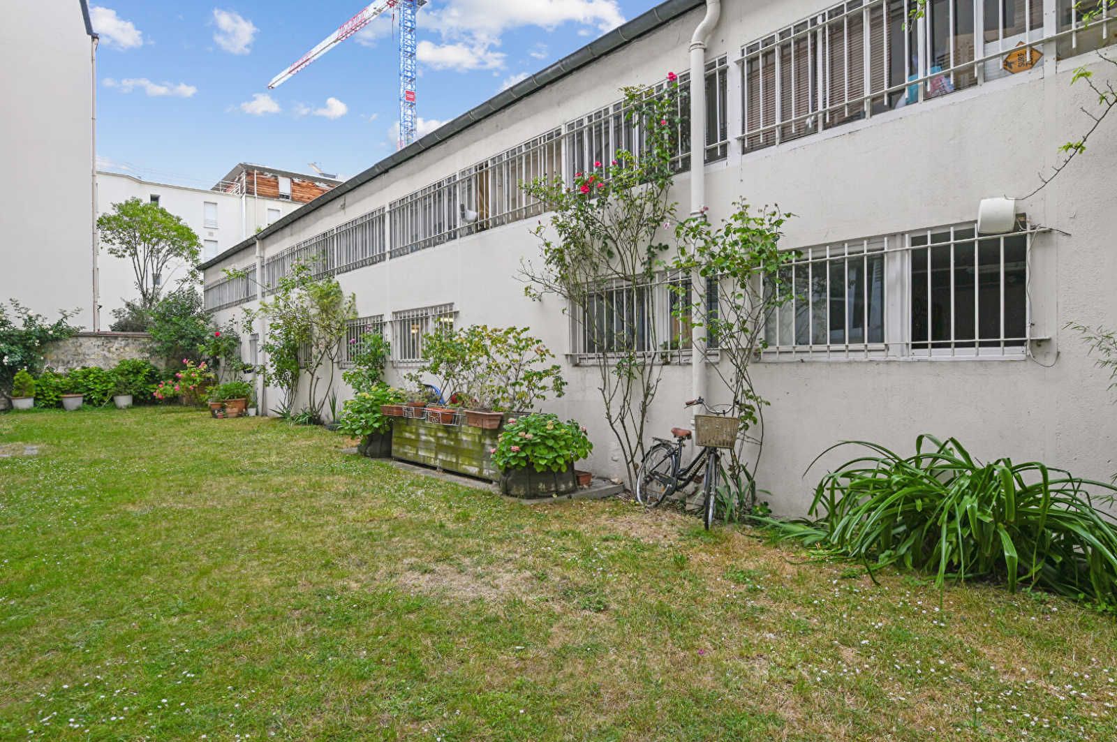 Jardin de copropriété accessible à l'arrière de l'immeuble.