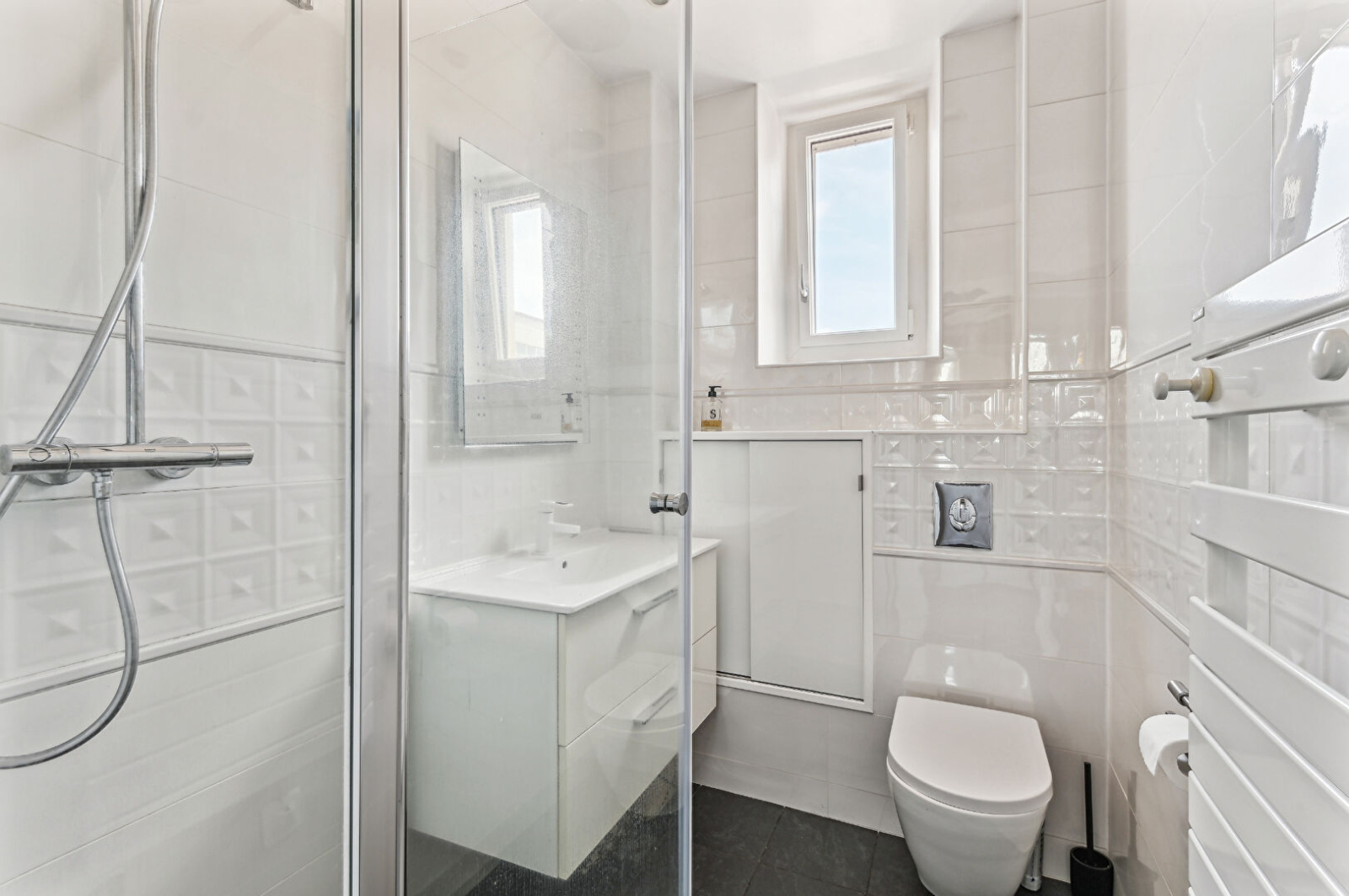 Dans une copropriété charmante de 1930 (parties communes refaites il y a 3 ans), au 2ème étage, un charmant appartement de 64.26 m² (58.70 m² carrez) en parfait état comprenant : une entrée, un grand double séjour de 27.65 m², une cuisine aménagée et équipée, une salle de douche avec WC, et deux chambres.