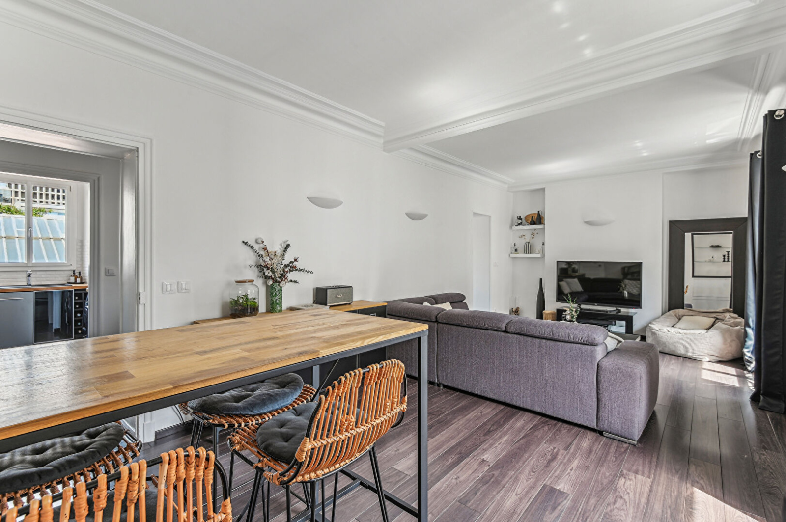 Appartement très lumineux, traversant, dans une rue calme, à deux pas du centre-ville, à moins de 10mn du tramway Belvédère. Accès aisé à Paris !