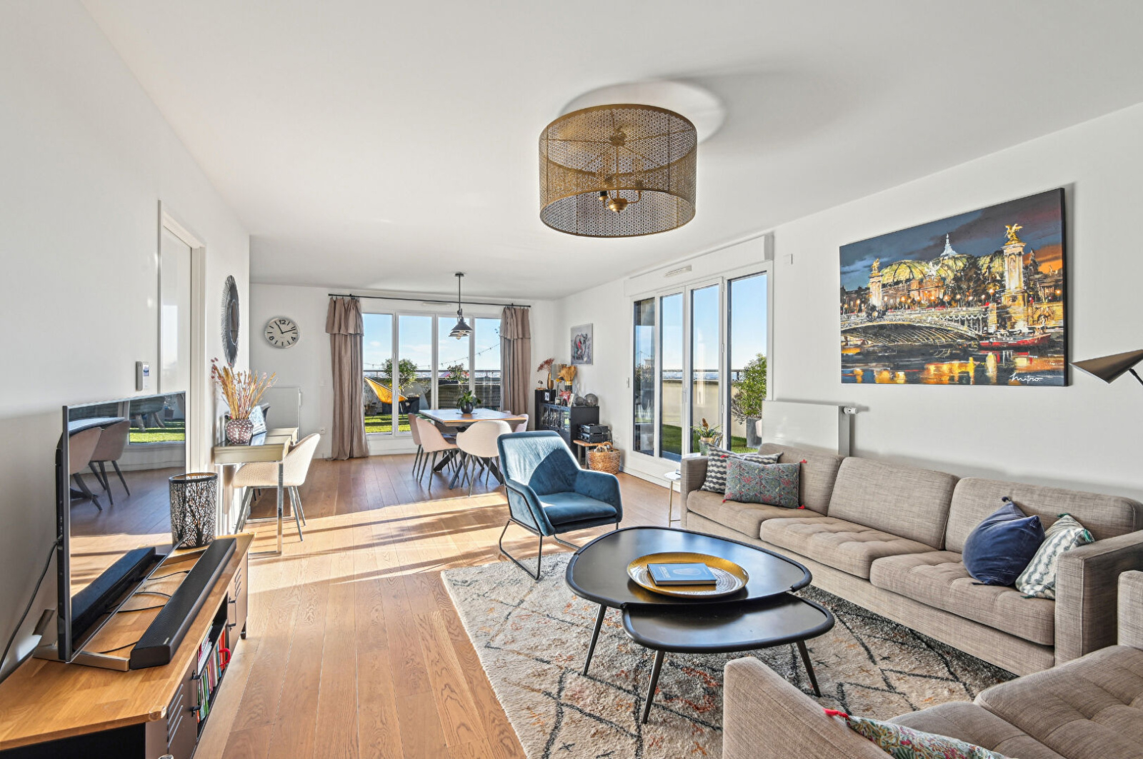 Dans une résidence de très bon standing (FRANCO SUISSE), et datant de 2018, il se compose d'une entrée avec rangements, un vaste séjour / salle à manger ouvert sur une cuisine aménagée et équipée, donnant accès à une terrasse aménagée de 55 m² avec vue panoramique sur Paris et sur les toits de Suresnes, un WC séparé. Côté nuit, une suite parentale avec rangements sur mesure et salle de douches avec WC, un espace enfants desservant : 3 chambres dont une avec balcon de 6 m² et une salle de bains avec WC.