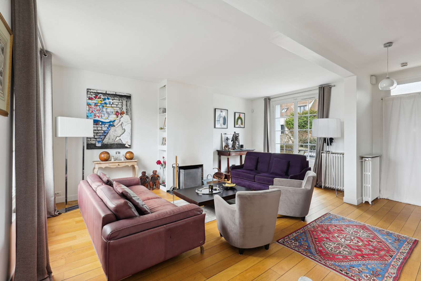Secteur du Val d'OR, à la frontière de SURESNES et de SAINT CLOUD, FONCIA Villa d'Ouest vous propos en EXCLUSIVITE une jolie maison de 175 m2 au sol (151.90m2 carrez). Cette maison en excellent état composée d'une entrée qui dessert d'un côté un séjour avec cheminée et offrant une vue PARIS et de l'autre une cuisine salle à manger. A l'entre-sol, une suite parentale avec dressing et salle d'eau, à l'étage, deux chambres et une salle de bains. En rez de jardin, cette maison dispose d'une 4ème chambre, d'une salle d'eau, d'une buanderie et d'un garage transformable en 5ème chambre. Un WC par niveau. A l'avant de la maison, sur rue, une cour de 50 m2 permettant de garer un véhicule et l'arrière, un jardin de 80 m2. Ses Atouts : pas de vis à vis, au calme absolu et pas de travaux à prévoir. Proximité du T2 et de la Gare SNCF. (3.76 % d'honoraires TTC à la charge de l'acquéreur.)