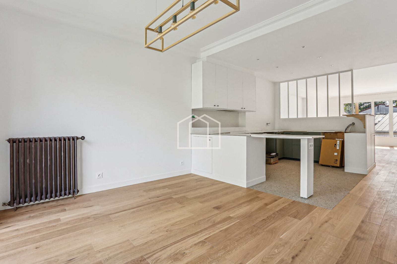 Refait à neuf avec de belles prestations, cet appartement familial est conçu comme une maison pour accueillir une grande famille avec un vaste espace de vie de 55m² constitué d'un séjour avec cheminée, d'une cuisine ouverte vers une salle à manger permettant d'accéder au jardin paysagé et totalement au calme.