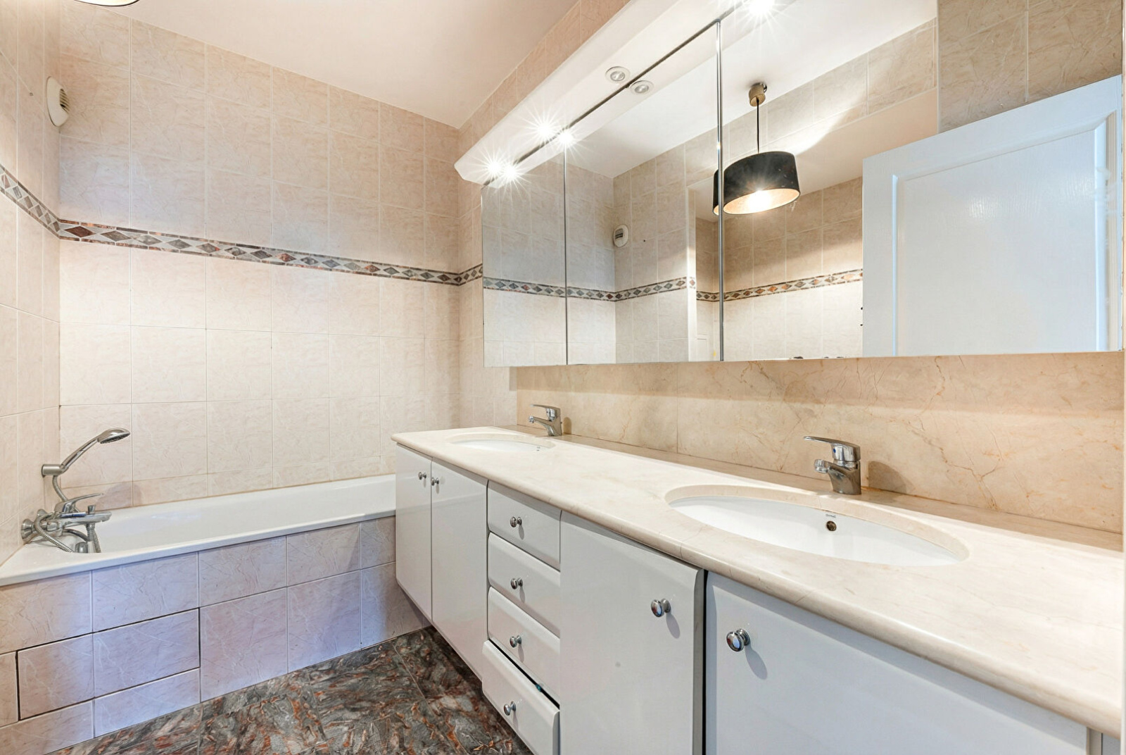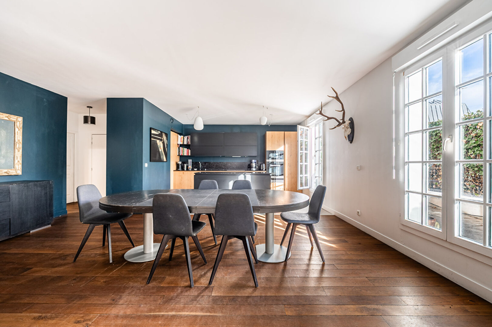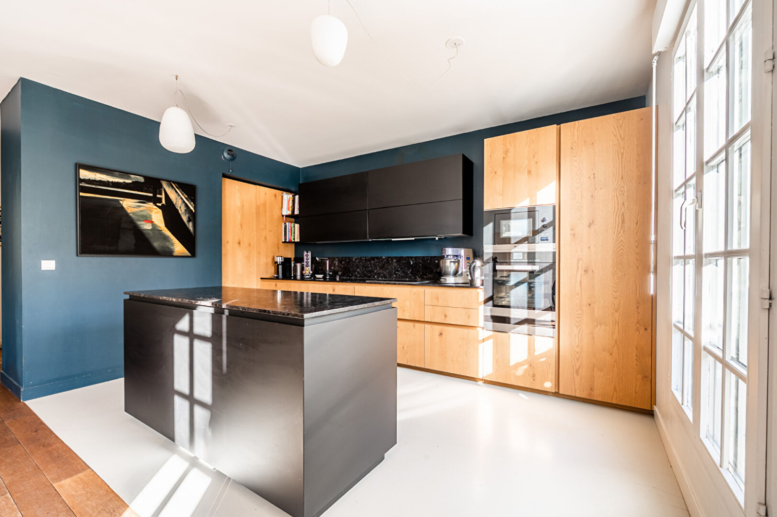 L'appartement est en excellent état, avec des prestations haut de gamme : parquet massif dans les pièces principales, finitions soignées et luminosité remarquable.