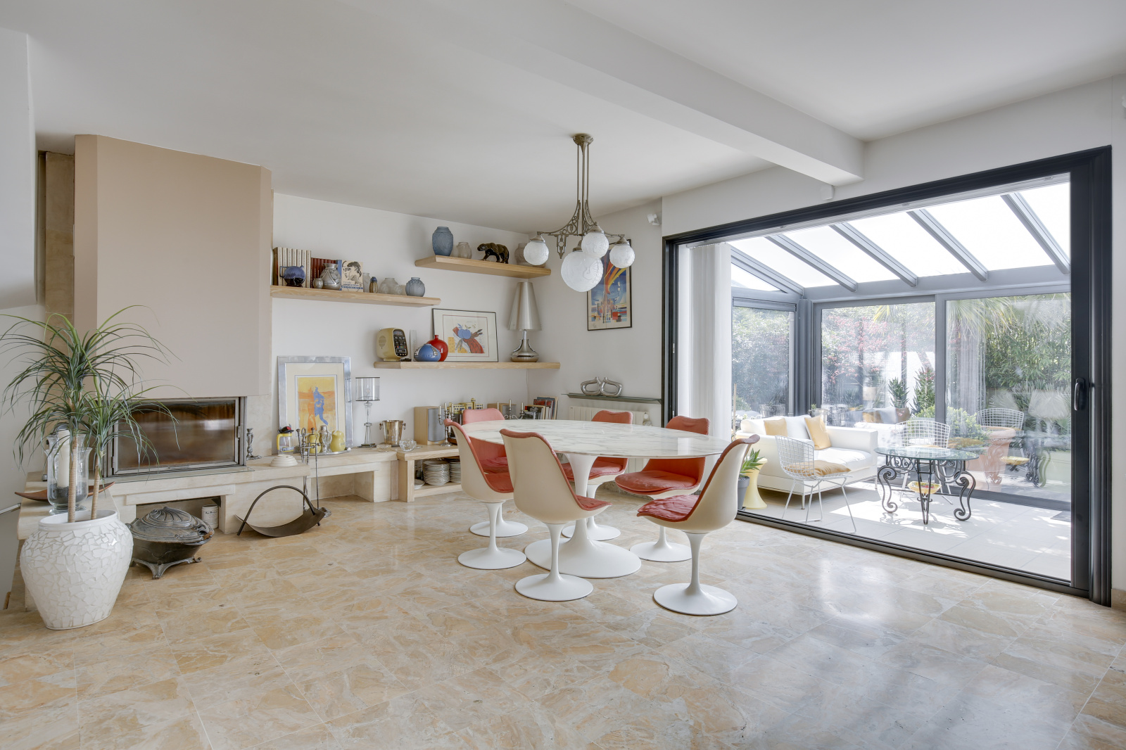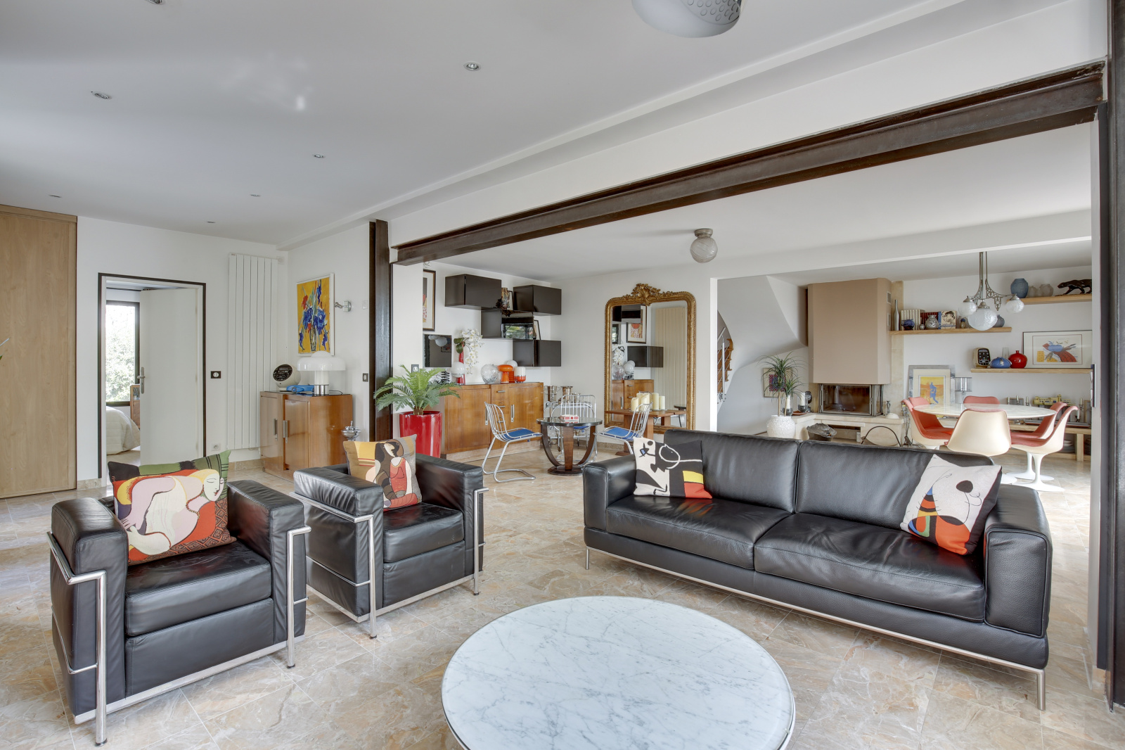SURESNES LIBERTÉ - Spacieuse maison de famille à l'abri des regards, au calme et dans un écrin de verdure de 300m² au sol (240m² habitables), récemment rénovée et agrandie. Elle comprend un vaste séjour / salle à manger de + de 60m² avec cheminée, complété d'une belle véranda avec accès jardin, une cuisine aménagée équipée, une suite parentale avec dressing et salle de bains privative. A l'étage : le palier dessert 3 chambres de belles tailles, une salle de bains. Au dernier étage, le palier dessert un bureau, une salle de bains et une chambre. En sous sol, l'espace accueille un studio avec salle d'eau et wc, une buanderie, un garage 2 voitures, un espace de rangements et une salle de jeux. Prestations : Agrandissement en 2010, huisserie double vitrage, volets roulants électrique, jardin entièrement paysagé avec arrosage automatique et éclairage. A proximité à pied des commodités (écoles, commerces) et du Mont Valérien - Accès aisé à Paris. Un havre de paix !