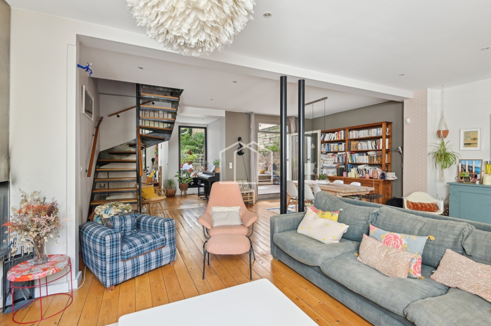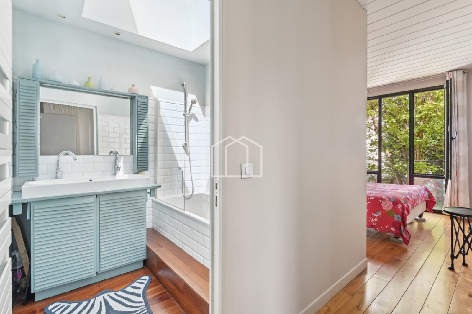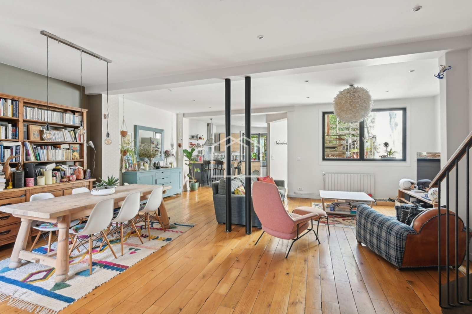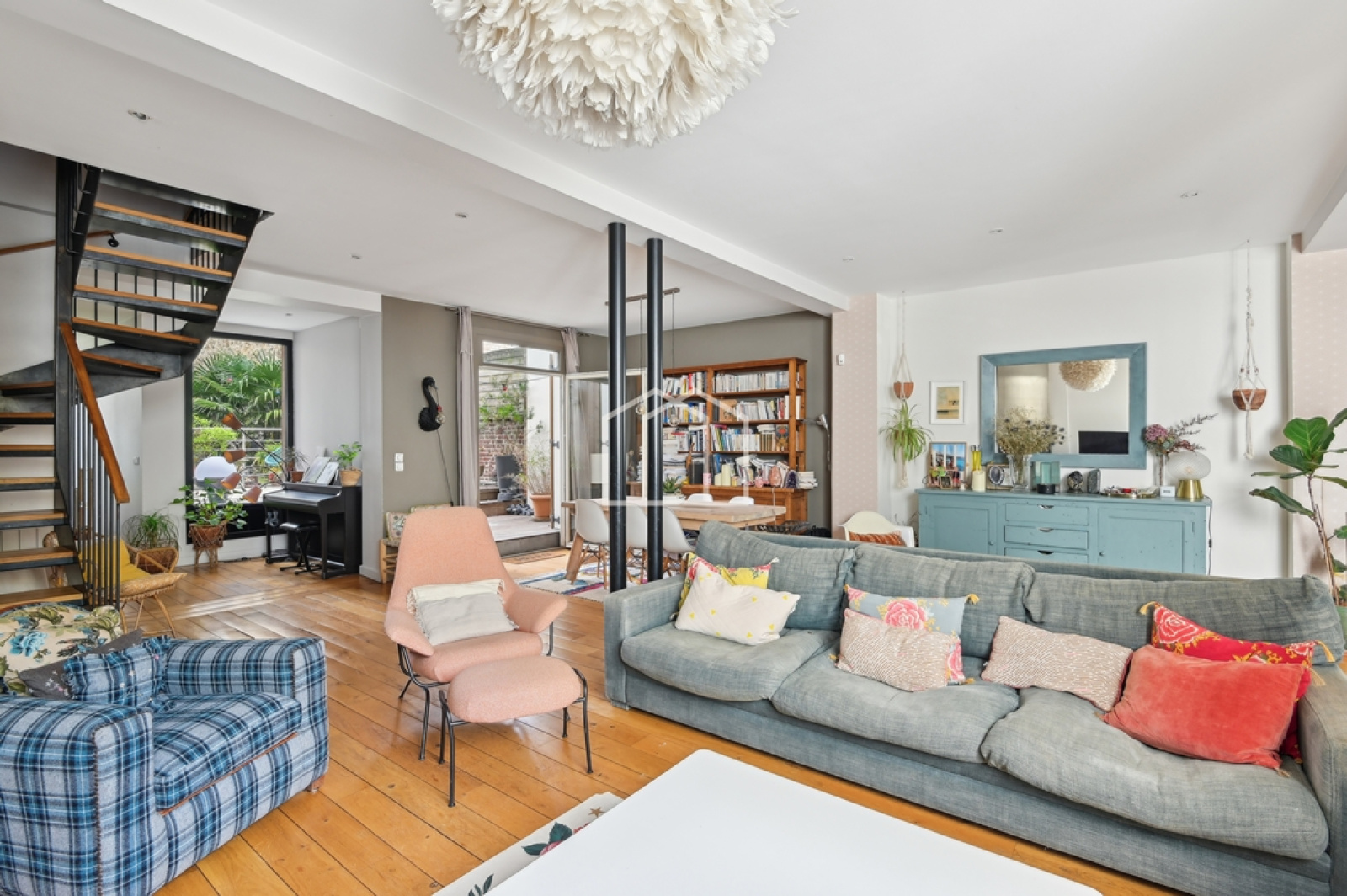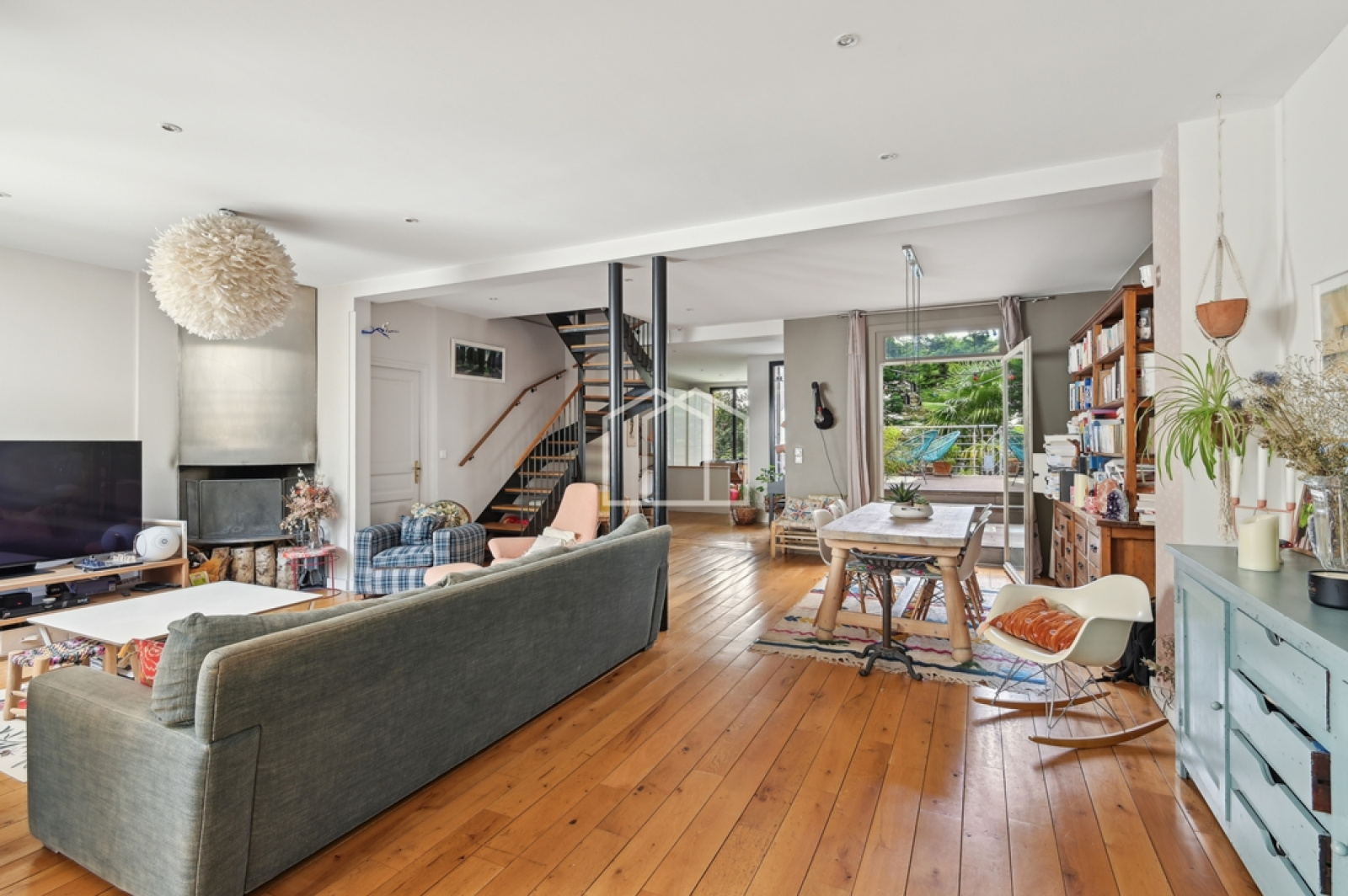 L'agence VILLA d'OUEST a le plaisir de vous proposer une spacieuse maison familiale située dans le centre-ville du haut de Suresnes. D'une surface habitable de 195 m2 environs, édifiée sur une parcelle de 324 m2, après quelques travaux d'agrandissement réalisé en 2006, cette maison aux volumes généreux dispose au rez-de-chaussée surélevé, d'une vaste pièce de vie intégrant une cuisine ouverte, le tout sur 63 m2 et prolongée d'une agréable terrasse qui surplombe le jardin. En complément, un petit salon et un bureau. A l'étage, une grande suite parentale avec sa salle d'eau et dressing, 3 autres chambres dont une avec terrasse , une salle de bains. En rez-de-jardin, les 5ème et 6ème chambres de cette maison, une buanderie et de grandes caves sans oublier une cave à vin enterrée. Pour le bonheur des enfants comme des parents, un grand jardin arboré. Cette maison dispose aussi d'un garage voiture et d'une place extérieur. (3.63 % d'honoraires TTC à la charge de l'acquéreur.)