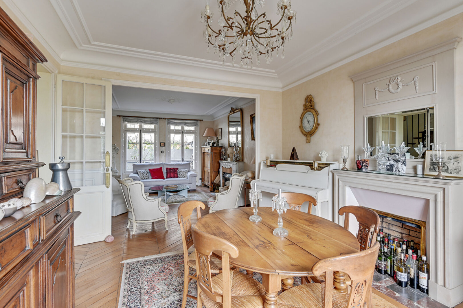 Vous cherchez une maison familiale spacieuse proche du centre-ville dans un environnement agréable, FONCIA Villa d'OUEST vous propose en EXCLUSIVITE une villa de 230 m2 (217 m2 carrez) avec un joli jardin paysagé avec terrasse à l'abris des regards. Vous retrouverez dans cette maison construite en 1900, tout le charme de ces belles bâtisses avec des moulures, des hauteurs de plafond, de jolis parquets et bien évidement des cheminées. Elle dispose en rez de chaussée d'une belle entrée avec un magnifique escalier pour desservir les étages de chambres. Un double séjour avec balcon et vue jardin, une cuisine qui vous emmènera vers un salon cosy et un WC. Au 1er étage, trois chambres , une salle de bain avec WC. Au 2ème étage, deux autres chambres, une pièce de rangement et une salle de bains avec WC. En rez de jardin, une grande pièces idéale pour un salon d'été, salle de jeux ou de sport..., un espace cave, chaufferie, atelier. Ses atouts : Vue dégagée sur PARIS, charme de l'ancien et beaux volumes. En complément, un garage voiture. Les 2 gares (T2 et SNCF) sont à 3 mns chacune pour un accès facile à PARIS, le centre-ville à 2mn à pied. Rafraichissement à prévoir avec un très beau potentiel. RARE sur le MARCHE ! (2.76 % d'honoraires TTC à la charge de l'acquéreur.)